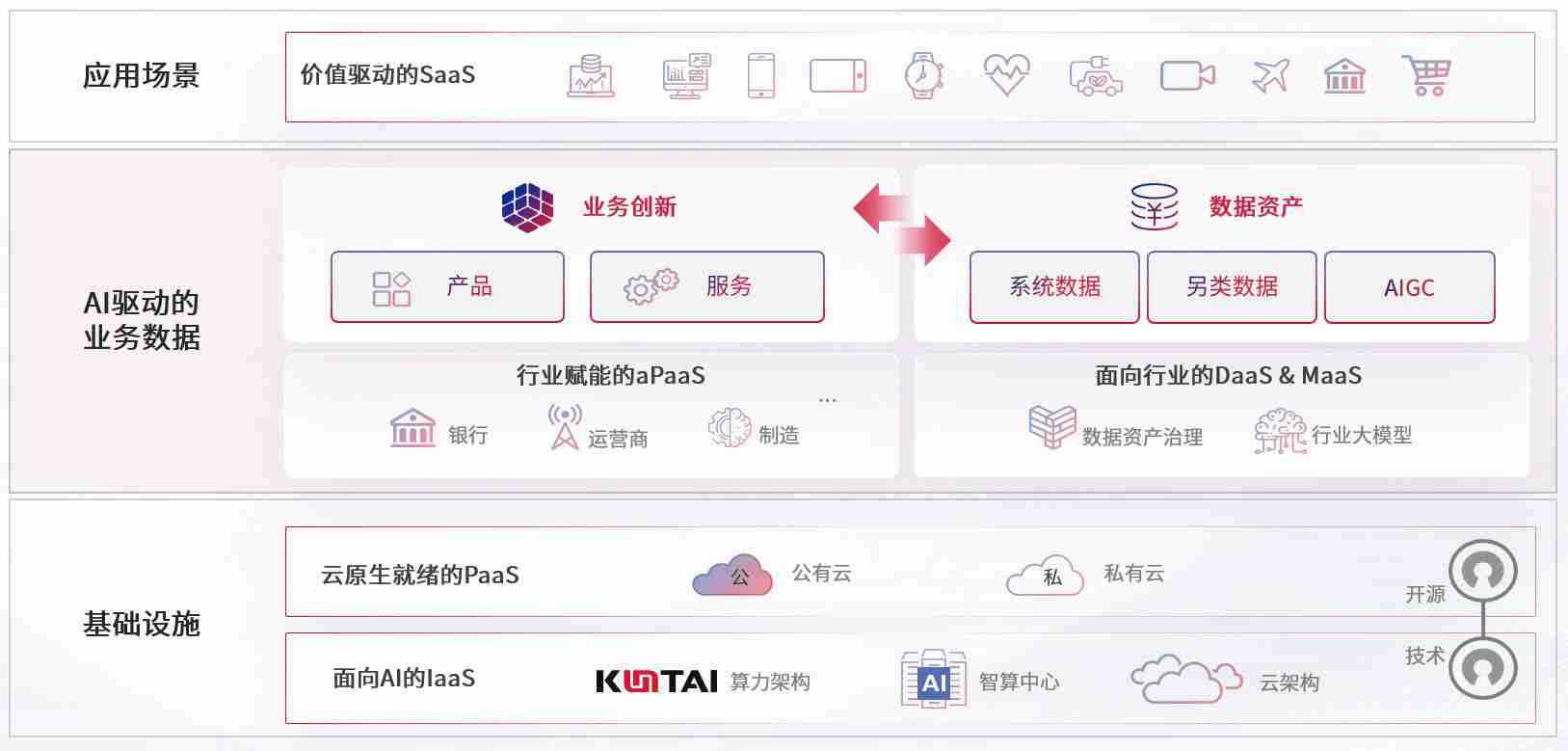 数字时代,,,围绕企业数字化转型的关键要素,,极悦娱乐数码开创性的提出数云融合战略和技术体系框架,,,着力在云原生、、、数字原生、、AI原生和信创产业上架构产品和服务能力,,,,为处在不同数字化转型阶段的快消零售、、汽车、、、金融、、、医疗、、、、政企、、、教育、、运营商等行业客户提供泛在的敏捷IT能力和融合的数据驱动能力,,,,构建跨界融合创新的数字业务场景和新业务模式,,,,助力企业级客户建立面向未来的核心能力和竞争优势,,,,全面推动社会的数字化、、智能化转型升级。。。